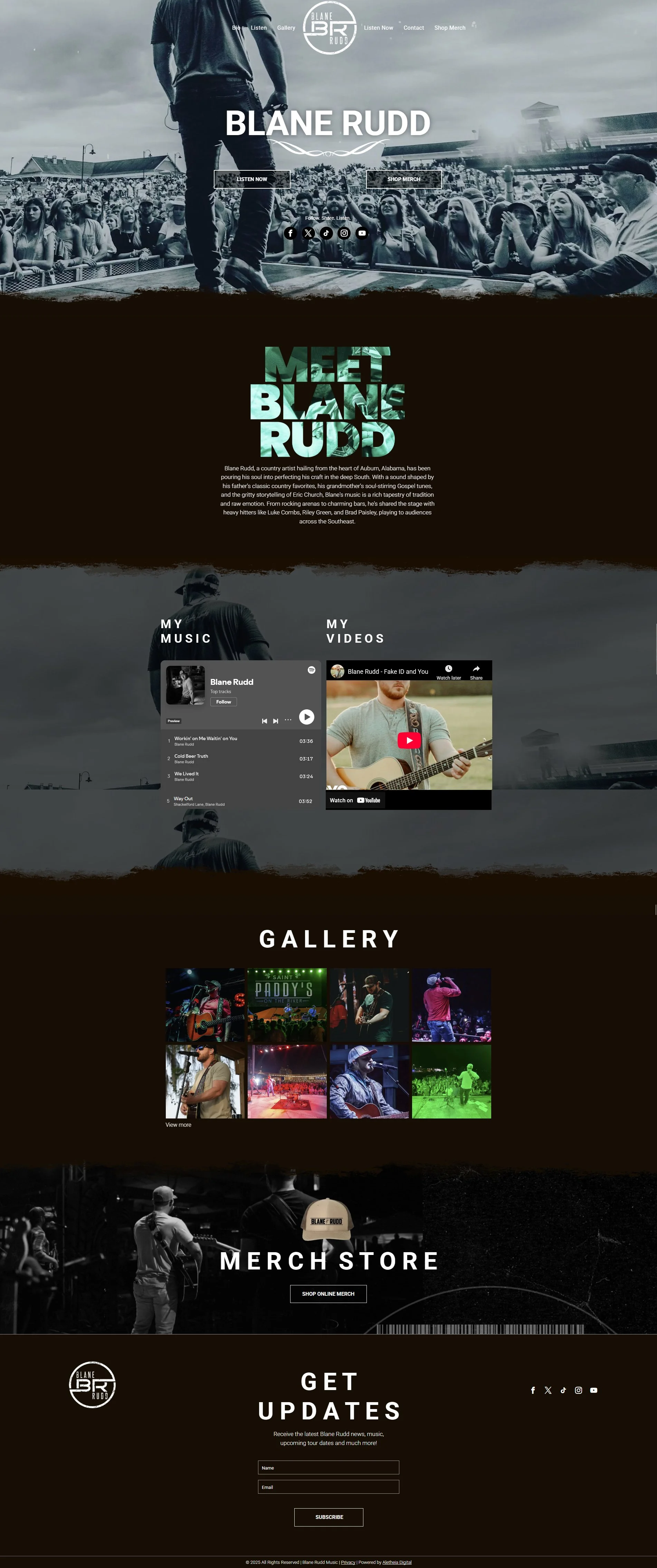 Website for a country music artist Blane Rudd. I added a moving grunge texture over the main sections.