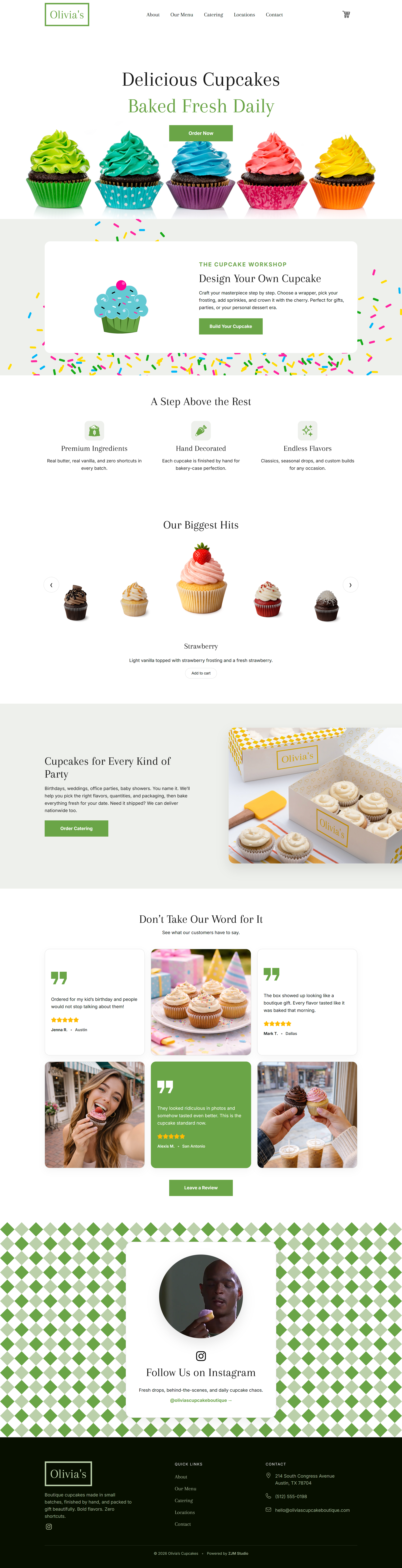 A modern, conversion-focused landing page for a boutique cupcake bakery, built with React and designed to highlight craftsmanship, flavor variety, and catering services while maintaining a refined, editorial aesthetic. The experience emphasizes typography, spacing, and subtle motion to create a premium feel without sacrificing performance or accessibility.